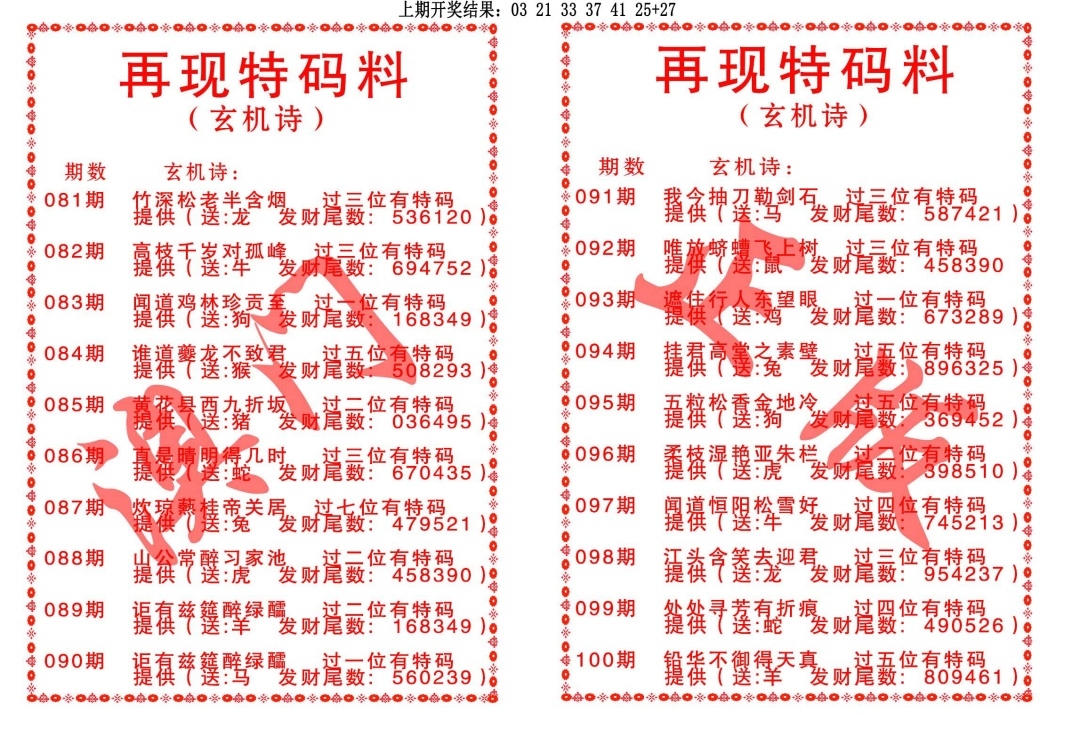 再现特码料