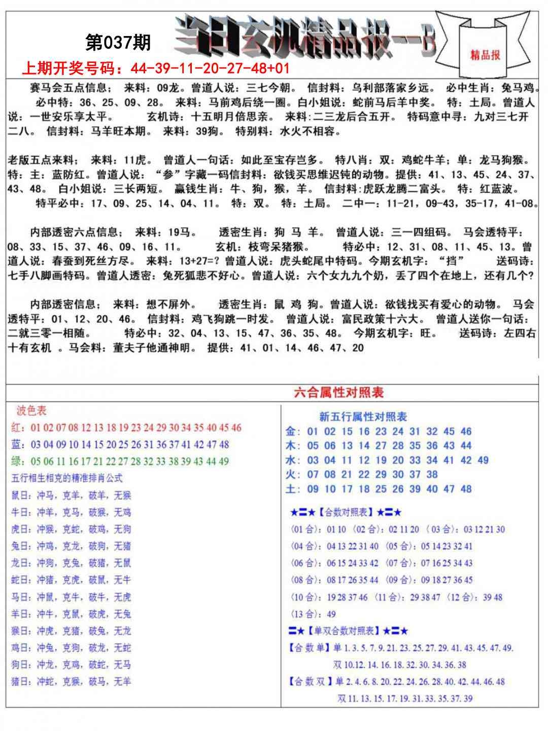 当日玄机精品报B