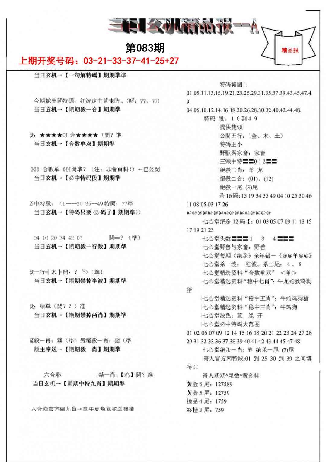 当日玄机精品报A